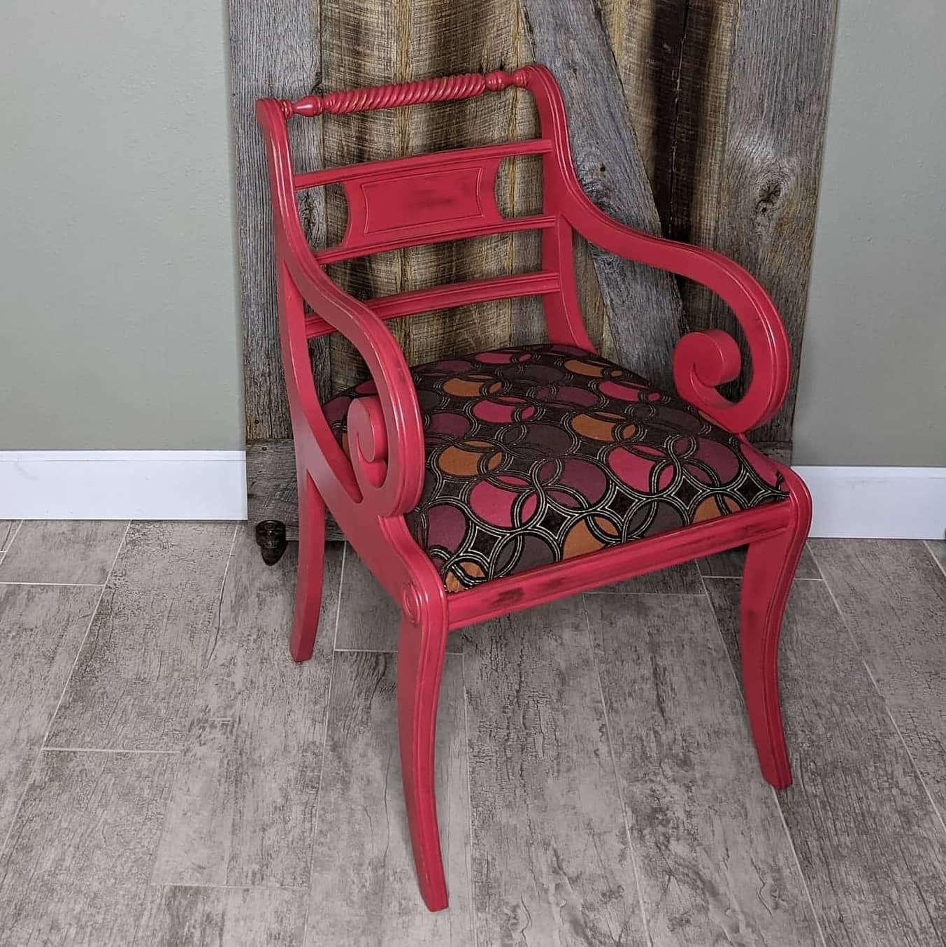 Looking to add that one off decor piece? New paint and fabric turned this old beauty into a stylish must have for those who like a touch of red! Purchase price $50.00. Does not include shipping or delivery.